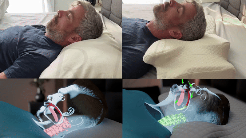 No masks, no hoses, just a scientifically designed cervical pillow that keeps your airway open and helps you breathe freely through the night.